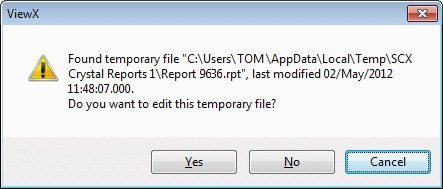 - If you saved the report as instructed in Step 1 (above), choose ‘Yes’ to edit the local temporary copy of the report.