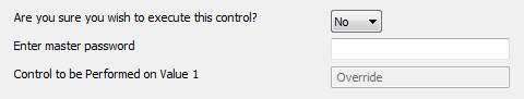 It is decided that another field should be added to the Form and that the field should indicate the type of action that is to be executed. As the Form is only displayed when the user attempts to override a point for Valve 1, the new field needs to indicate that an Override control will be executed. The new field is for information only, and so is to be 'grayed out'.