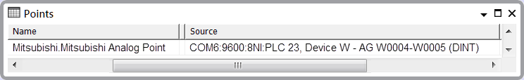 An analog point is to represent the data that is located at W0004 and W0005 within the above address range. Within Geo SCADA Expert, the analog point has this configuration: