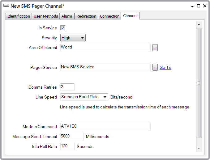 1. Display the Pager Channel Form. If the Pager Channel you want to configure does not already exist in the database, you will need to Create a Pager Channel Database Item, then display its Form.