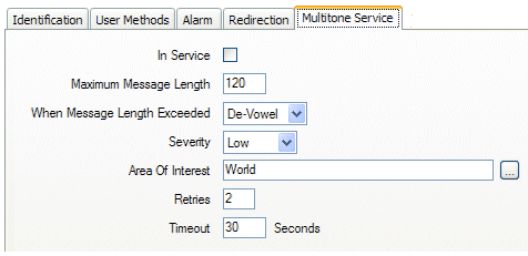 - Select the <Pager> Service tab, for example, for a Multitone Pager Service, select the Multitone Service tab.